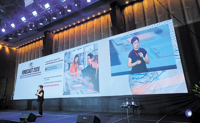 This edition of BusinessWorld Forecast 2026 was presented by BusinessWorld Publishing Corp., Ford Motor Company Philippines, and Megaworld Corp.; together with gold sponsors Ayala Corp., BDO Capital and Investment Corp., Federal Land NRE Global, Inc. (FNG), JuanHand, San Miguel Corp., and SM Investments Corp.; silver sponsors Citicore Renewable Energy Corp., DATEM, Inc., GCash, Globe Telecom, Inc., GT Capital Holdings, Inc., PLDT, Inc., and Smart Communications, Inc.; bronze sponsors Development Bank of the Philippines, Ovialand, Inc., Philippine Amusement and Gaming Corp., SM Supermalls, and National Grid Corporation of the Philippines; partner organizations Asian Consulting Group, American Chamber of Commerce of the Philippines, Bank Marketing Association of the Philippines, British Chamber of Commerce of the Philippines, CCI France Philippines, European Chamber of Commerce of the Philippines, Financial Executives Institute of the Philippines, J. Legaspi Computer Graphics, Management Association of the Philippines, Team Executive Decisions, Philippine Chamber of Commerce and Industry, Philippine Franchise Association, Philippine Retailers Association, and Isla Lipana & Co. (PwC Philippines); and media partners One News and The Philippine STAR.