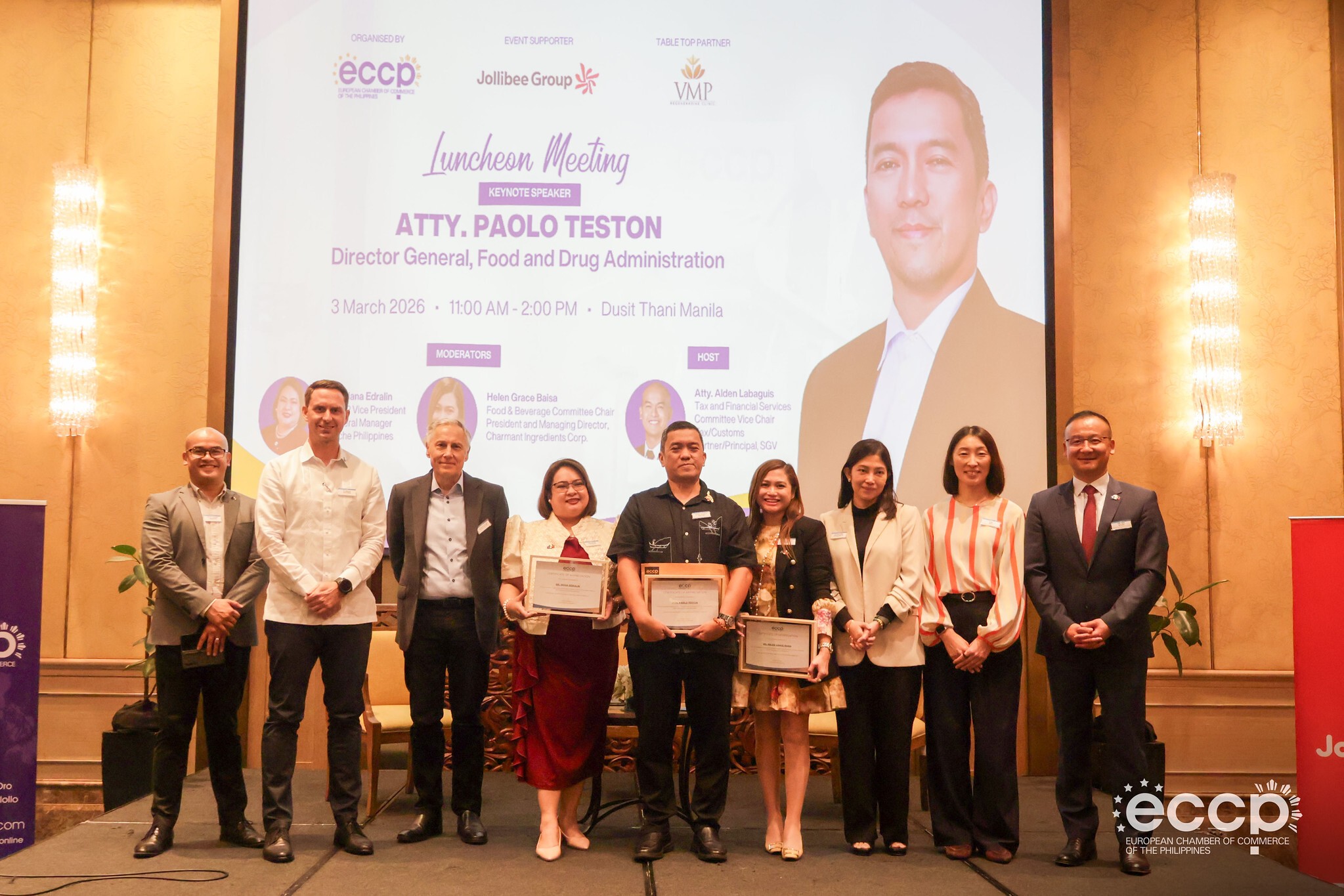 Makati City, Philippines — The European Chamber of Commerce of the Philippines (ECCP) recently hosted Food and Drug Administration Director General Paolo Teston for a high-level luncheon dialogue with industry leaders from the healthcare, food, and consumer sectors.